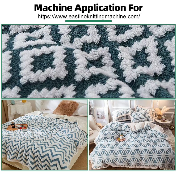 This machine can produce both high-pile and low-pile fabrics, as well as multi-color jacquard fabrics, offering versatile applications in various knitting processes.