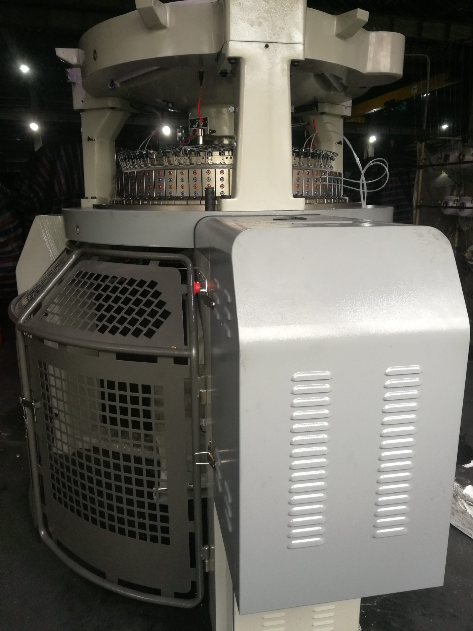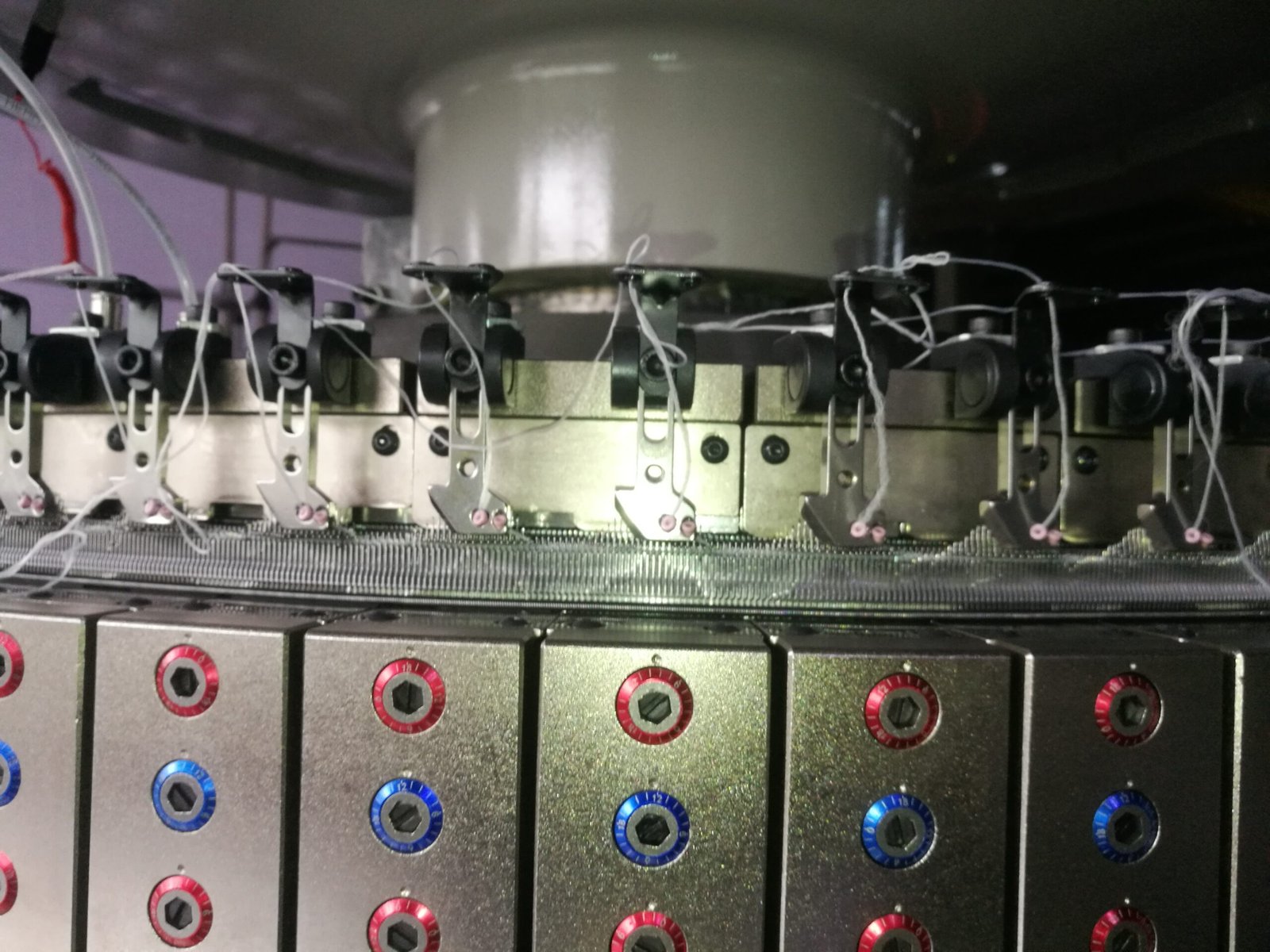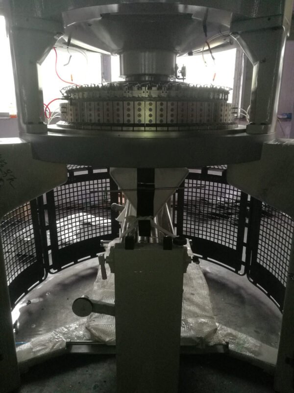 The machine can handle a variety of yarn combinations, including cotton, polyester, lycra, and other blends, producing innovative fabrics with unique properties.