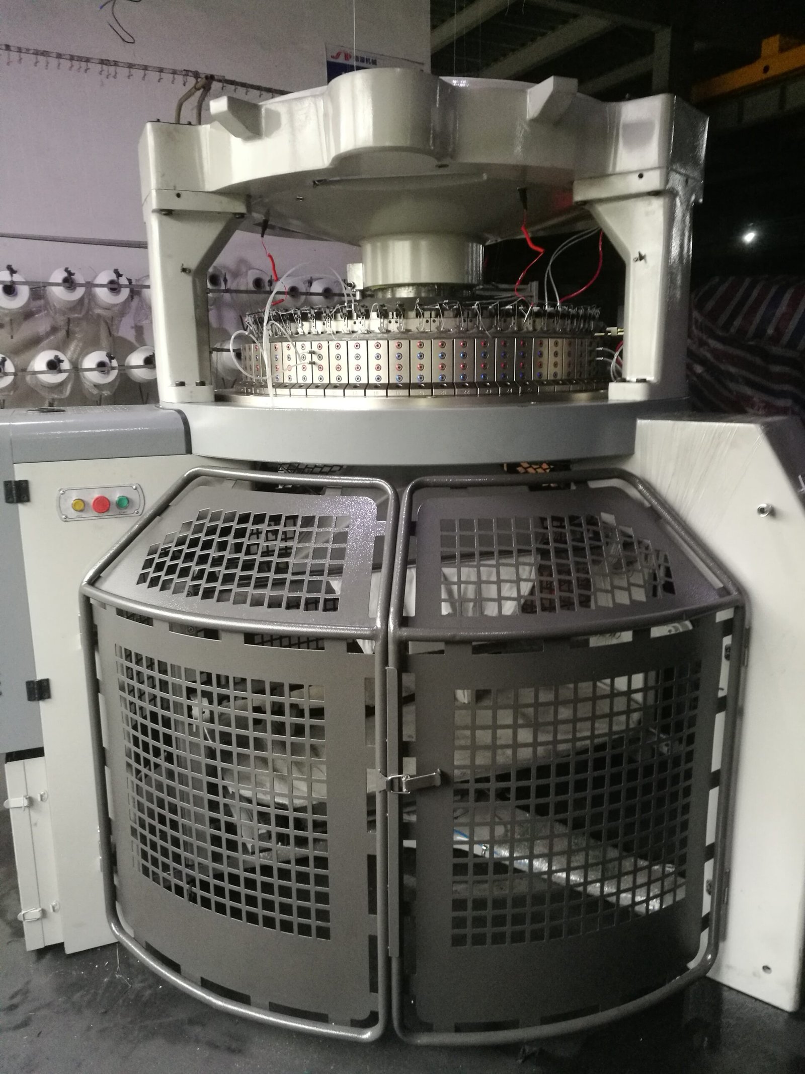 Double jersey circular knitting machine features dual-track upper and four-track lower needle designs, allowing for versatile fabric production. Its high-precision single-block diamond structure, CNC-processed and heat-treated, ensures durability and flexible needle transport. With a superior lubrication system and low-noise oil immersion gear design, it minimizes wear. The durable needle cylinder is easily replaceable without removing the upper drive. An advanced digital touch panel provides easy operation and monitoring. The AC inverter motor ensures smooth speed control, while the 120-section variable-speed coiling system offers precise fabric winding.