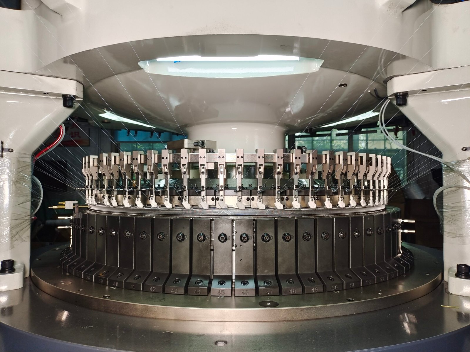 two-track upper plate and four-track foot wall for versatile fabric production. Precision CNC-machined components ensure high wear resistance, smooth needle transport, and low-noise operation. The advanced electronic control system allows easy operation, speed adjustment, and real-time status display. Durable needle cylinders are easily replaceable, and the coiling machine offers precise, variable-speed coiling for high-quality fabric output.