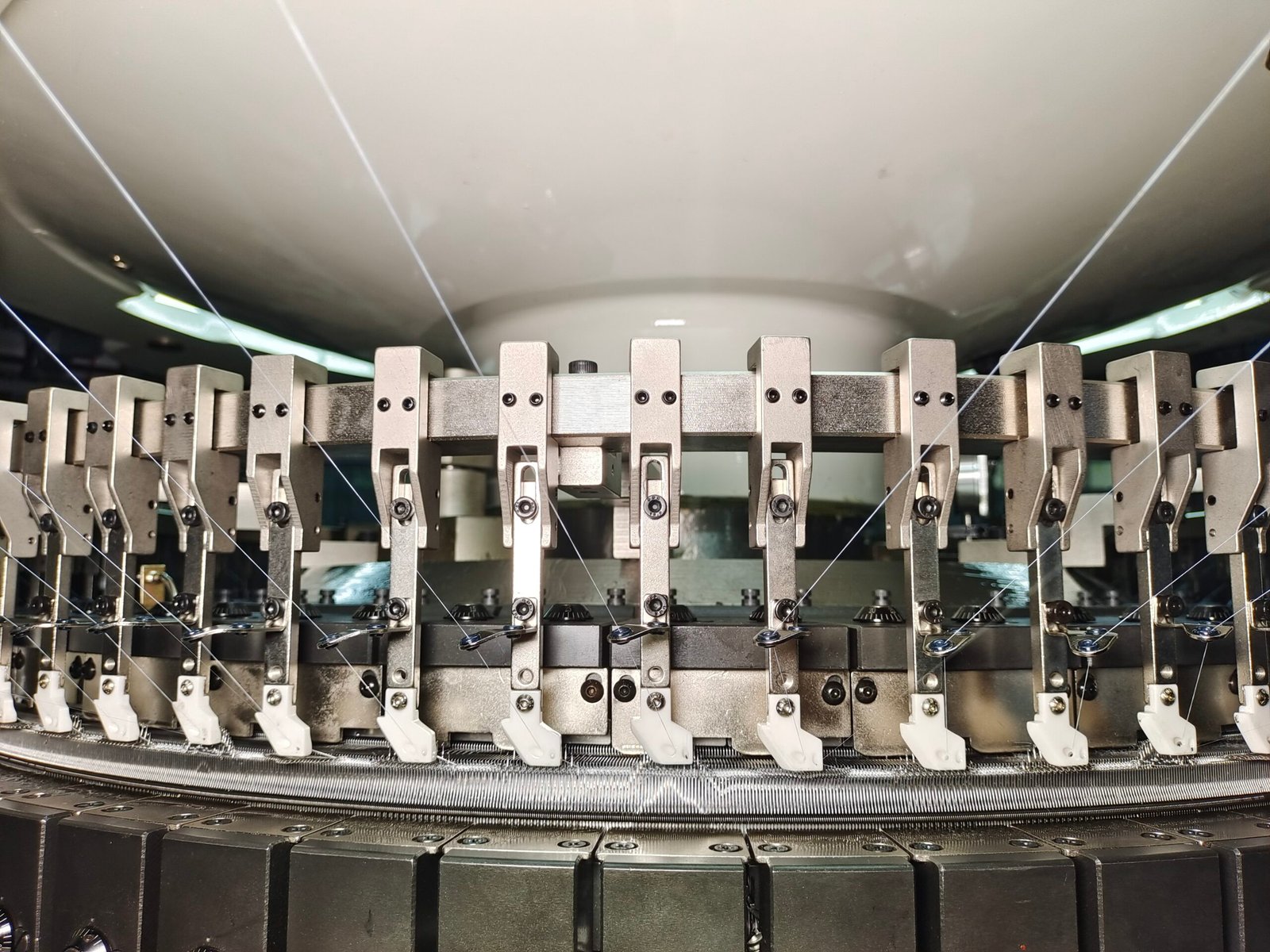 The machine can handle a variety of yarn combinations, including cotton, polyester, lycra, and other blends, producing innovative fabrics with unique properties.