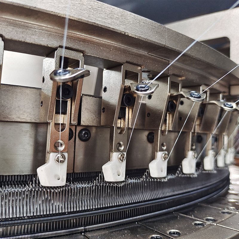 Equipped to handle elastic yarn plating, the machine ensures optimal performance with stretchy and resilient fabrics. This feature is ideal for producing fabrics with enhanced elasticity and durability.