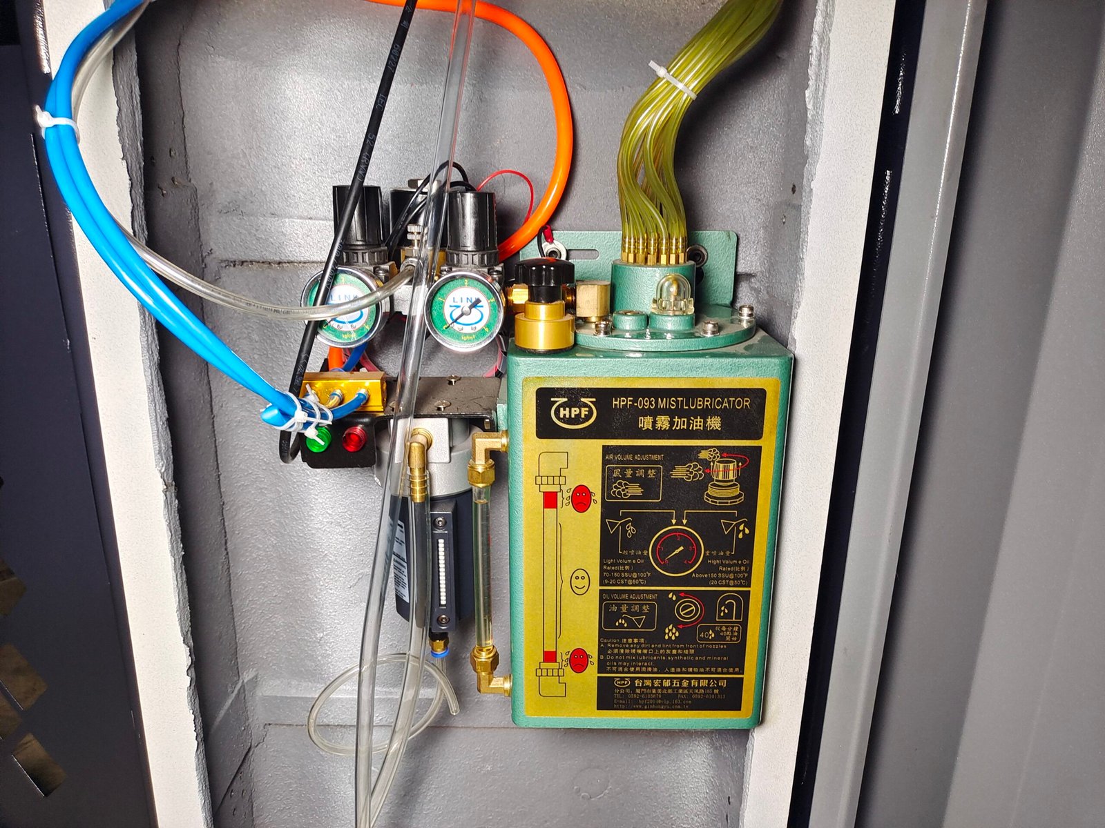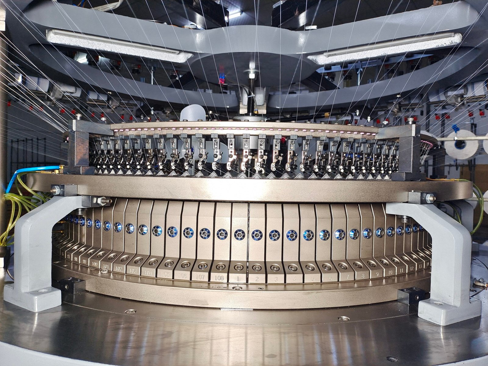 Designed with separate lubrication for gear oil and needle oil, the system uses an oil-spraying mechanism to lubricate the knitting components, extending the machine’s lifespan.