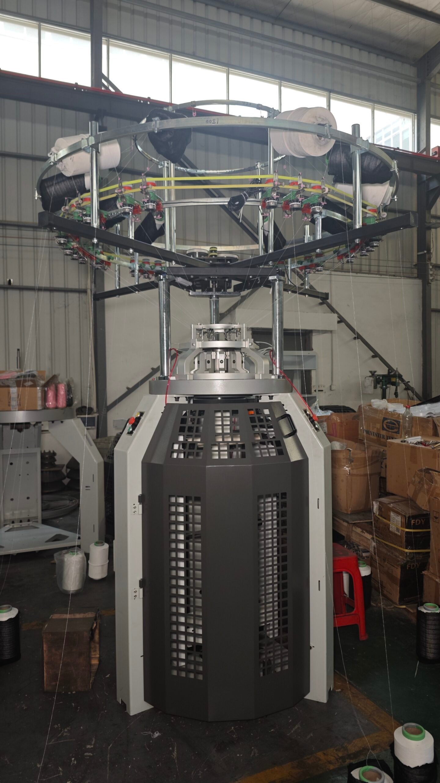 Single jersery high legs fleece circular knitting machine’s special cam curve design of machine, can satisfied the market fabric changeful requirement. Our machine can produce cotton, polyester, yarn of ramie, flax, lycra, synthetic, differentmixed yarn fabric. Special sinker design, make the fabric design more clear, loop length more smooth.