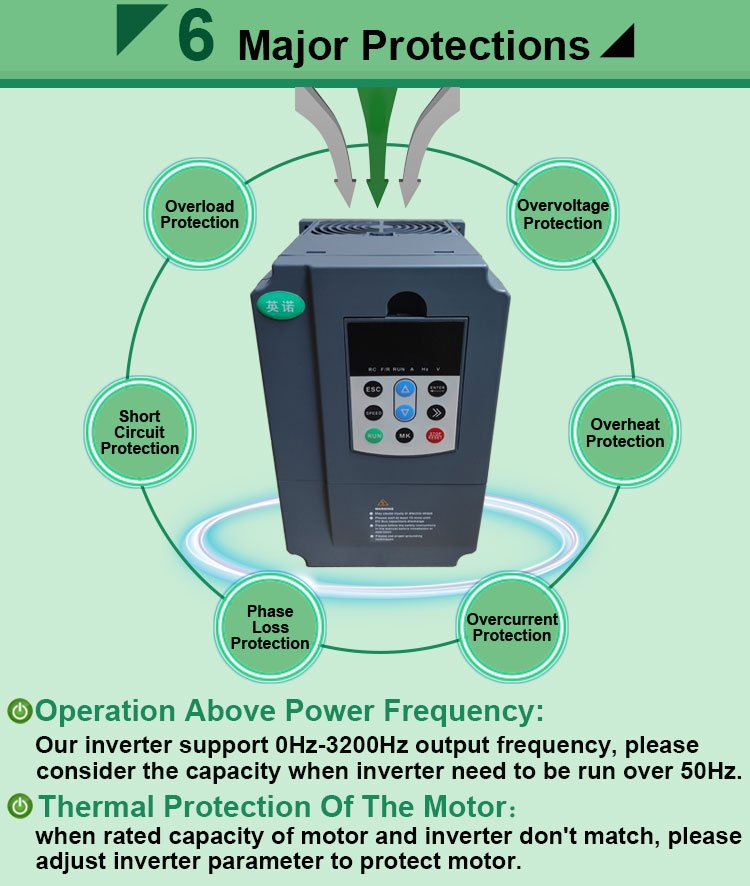 3.Rich Control Methods:In addition to speed sensor vector control, speed sensorlessvector control, and V/F control, it also supports V/F.